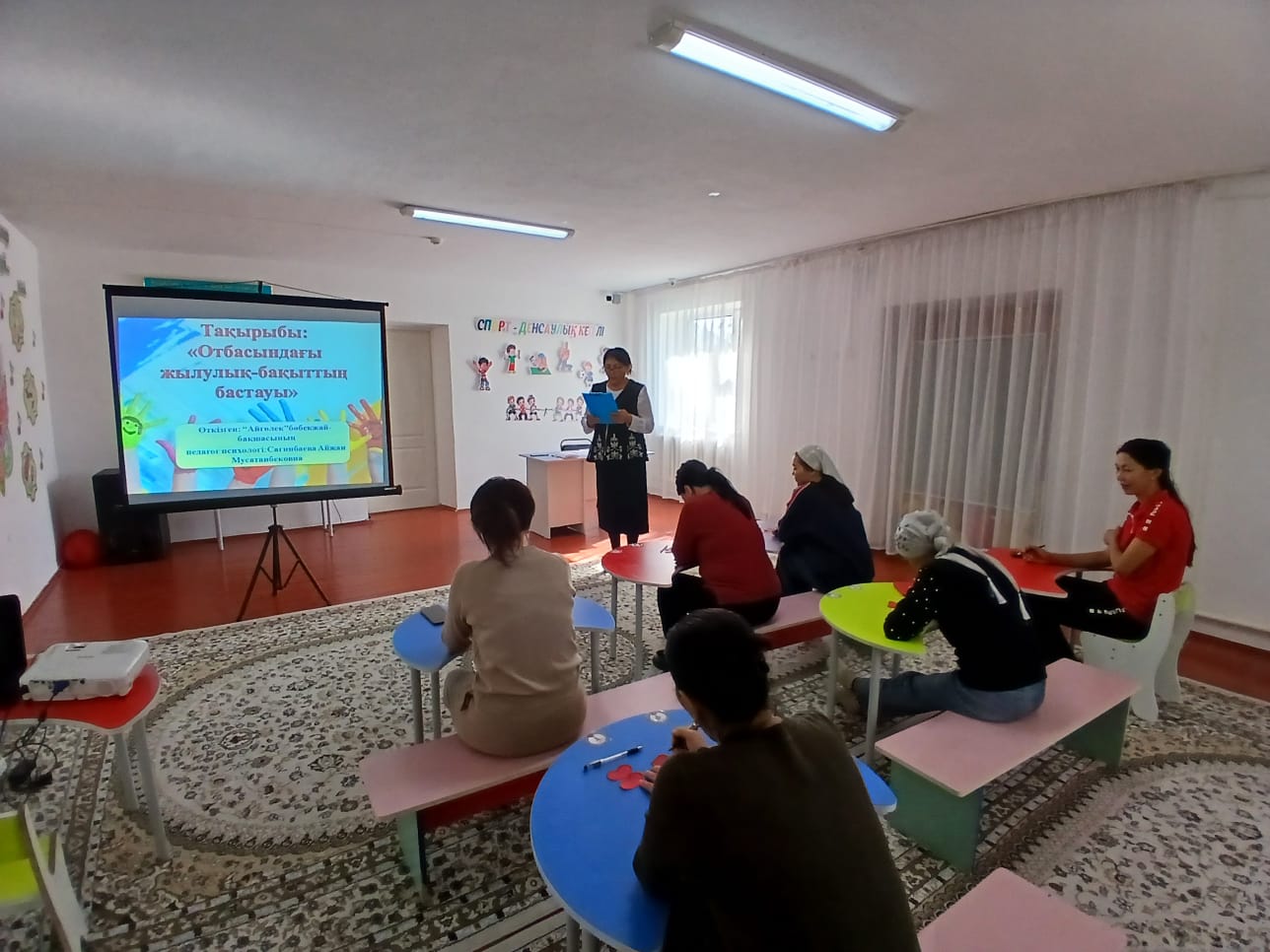 10.10.2025ж. "Айгөлек" бөбекжай-бақшасында «Адал азамат – біртұтас тәрбие» бағдарламасы аясында және «Жас аналар мектебінің» жұмыс жоспарына сәйкес балабақшада жас аналарға арналған тренинг өткізілді.
