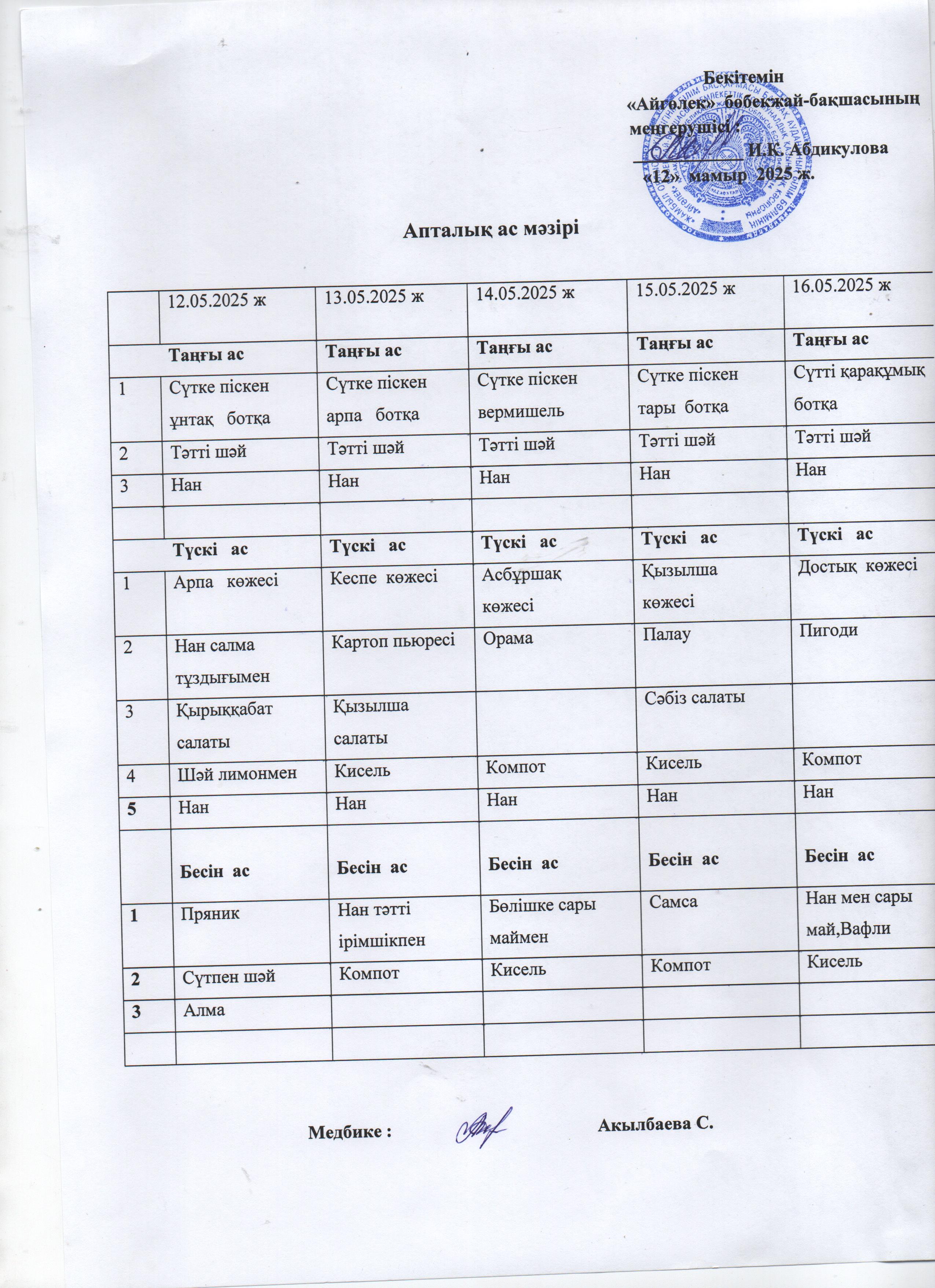 Ас мәзірі 12.05.2025ж-16.05.2025ж