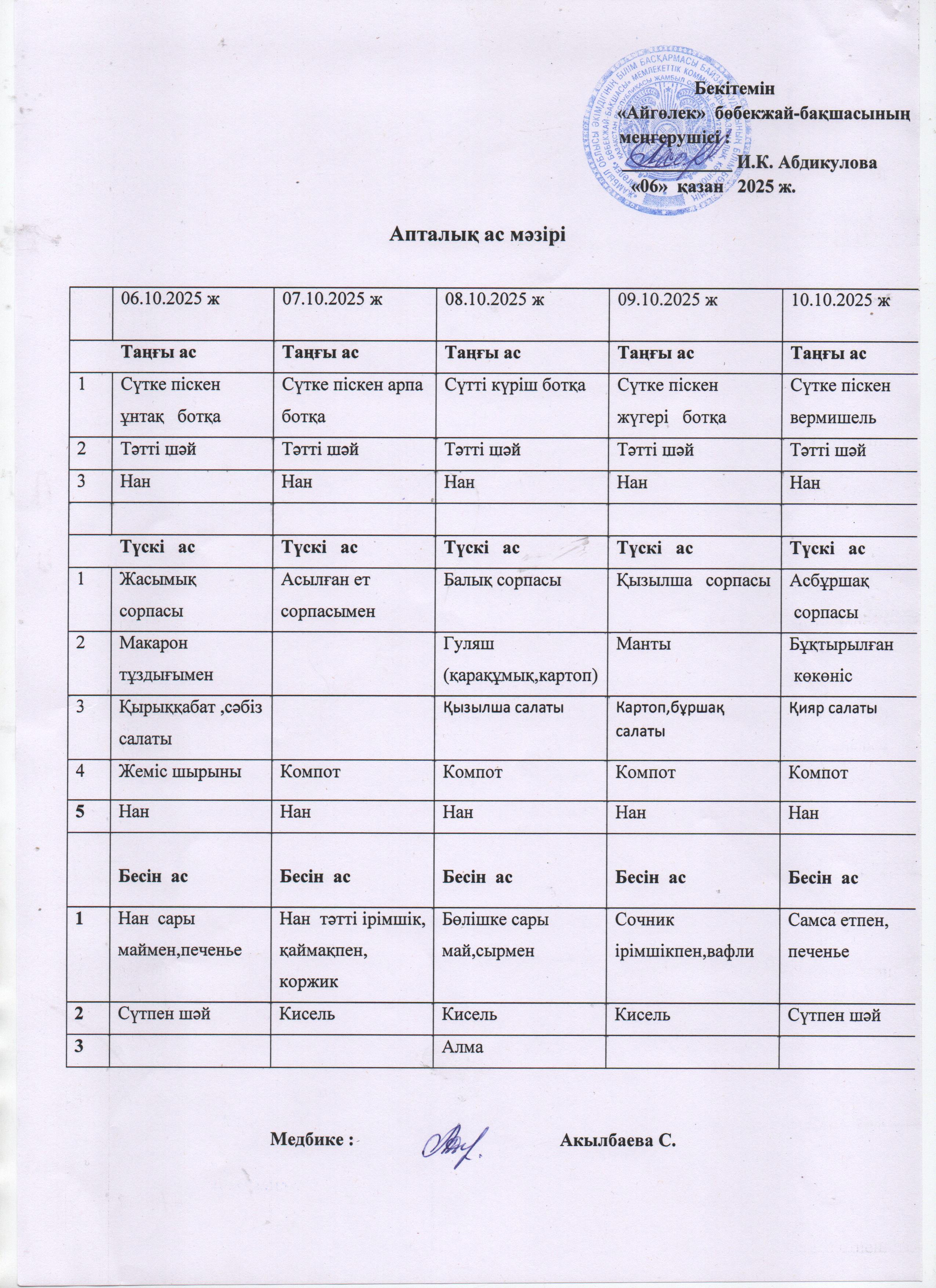 » Ас мәзірі 06.10.2025ж-10.10.2025ж
