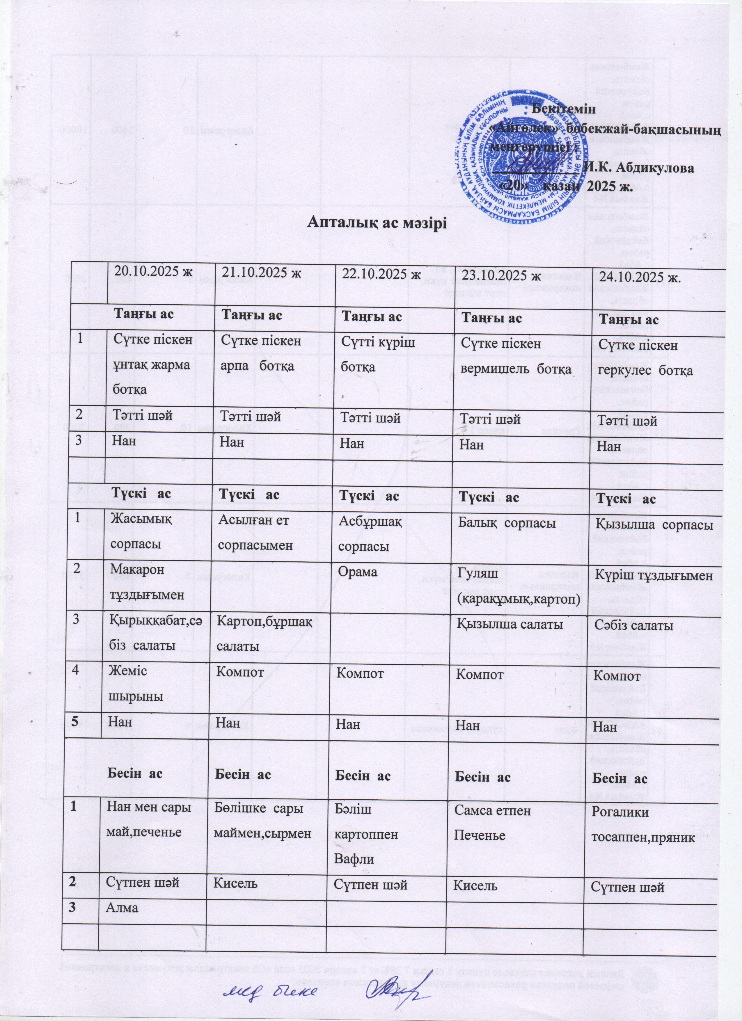 Ас мәзірі 20.10.2025ж-24.10.2025ж
