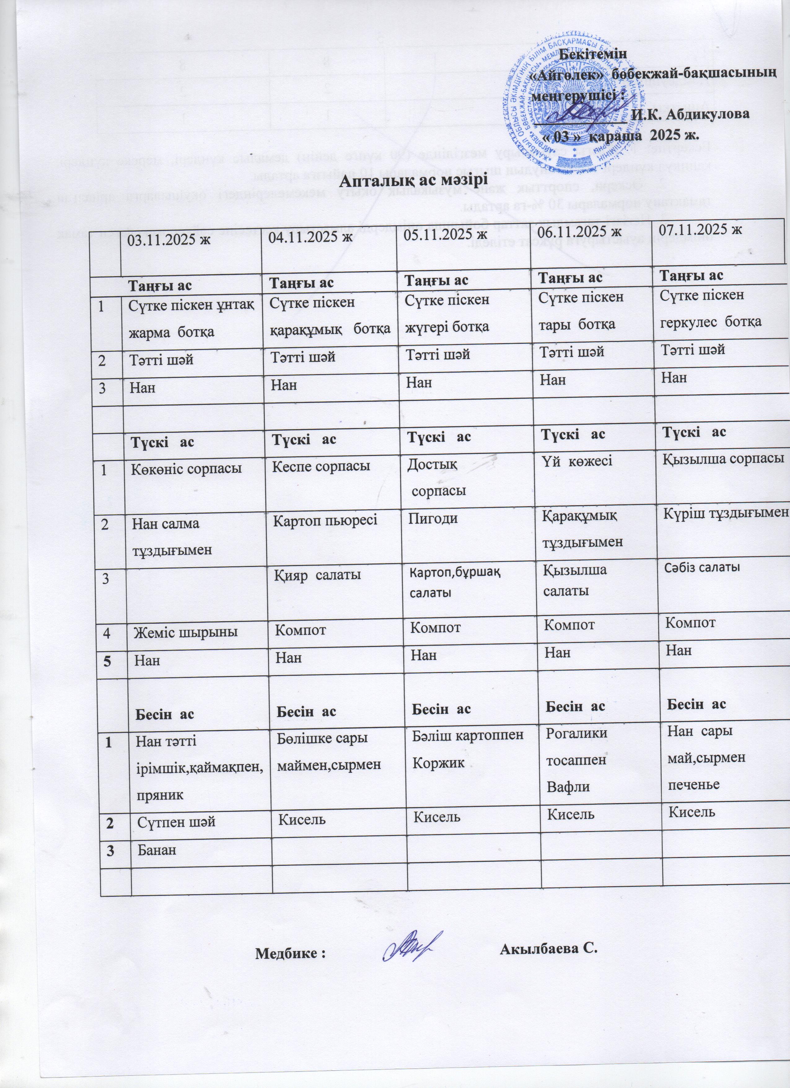 » Ас мәзірі 03.11.2025-07.11.2025ж