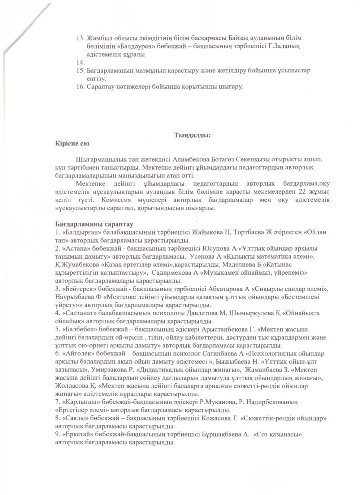 "Ең үздік дамытушы орта" аудандық байқауы.