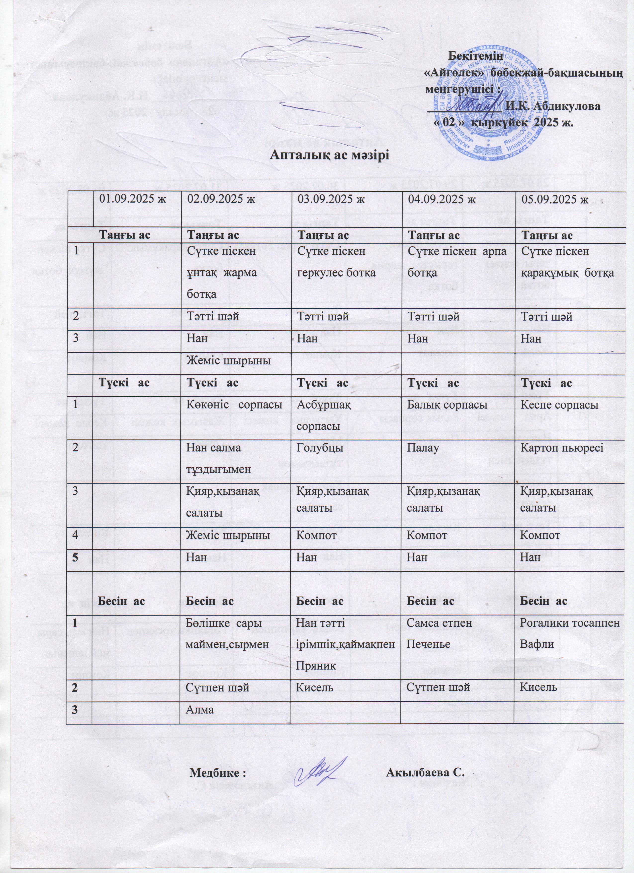 Ас мәзірі 02.09.2025-05.09.2025ж