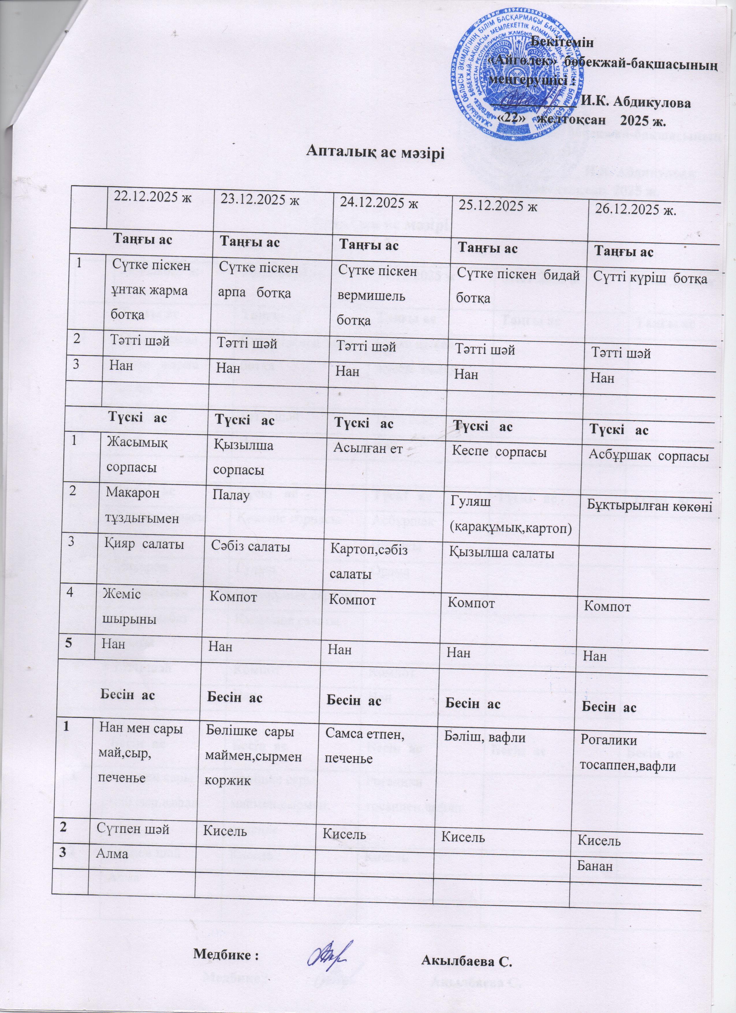 » Ас мәзірі 22.12.2025ж-26.12.2025ж