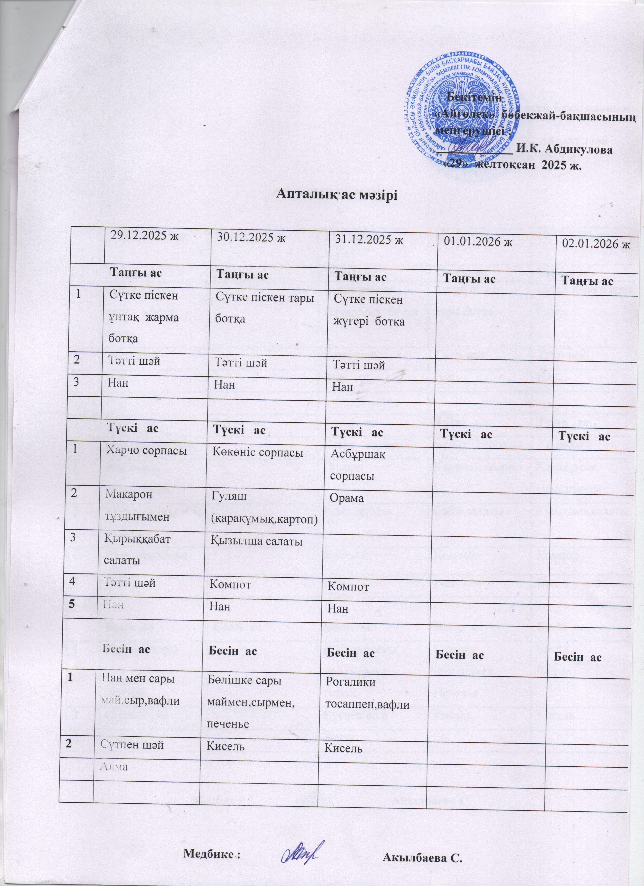 » Ас мәзірі 29.12.2025-31.12.2025ж
